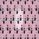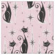 Pour l'amateur de rétro amateur de chat, mon illustration vectorielle originale de chats noirs, starbursts, & diamants de style atomique du milieu du siècle, en noir et rose pâle sur un arrière - plan rose cool, avec des grains de tissu simulés.