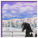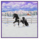 Piebald Noir Piebald Gypsy Vanner Cheval Trotting dans la neige.