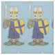 Un chevalier mignon de bande dessinée plaqué dans le courrier et la grande barre juge son épée haute, prêt à défendre son château.