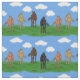 Ce tissu à motifs présente des illustrations de style réaliste de chevaux de couleur allant du brun clair au noir. Les chevaux se tiennent sur l'herbe verte luxuriante contre un arrière - plan de ciel bleu avec des nuages blancs moelleux.