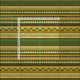 Le motif géométrique présente de l'or vert et de l'ivoire en bandes horizontales et lignes de chevrons. Des formes de cercle et de losange.