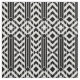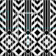Le tissu géométrique élégant comporte un motif noir et blanc de fantaisie avec les chevrons noirs et blancs séparés par les rayures noires audacieuses. Les blocs de rayures finissent à une rangée des diamants jusqu'à ce que les répétitions de conception. Les filets blancs largement espacés divisent les chevrons et les diamants en sections.