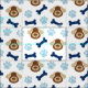 Ce mignon chiot brun avec des empreintes de pattes bleus et des os bleu marine est parfait pour les animaux de compagnie comme pour les enfants!
