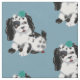Tissu Chien blanc noir Ladybug Blue Vintage Nursery