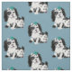 Avec un chien chiot peint en noir et blanc et son petit coccinelle rouge, ce tissu a une sensation vintage. Le chiot a l'air doux et porte une petite marguerite turquoise par son oreille. L'arrière - plan est bleu pâle moyen. Joli décor traditionnel pour la crèche, le garçon ou la fille d'un bébé. Les couleurs noir, blanc et bleu offrent de nombreuses possibilités de décoration.