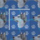 C'est un joli et mignon portrait d'un Malamute d'Alaska sur un arrière - plan bleu avec des empreintes de pattes et des pistes en gris, rose et bleu. Conception par Diane Blackman. La même conception est disponible avec d'autres images amusantes de chien.