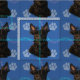 C'est un joli et mignon portrait d'un Scotty Scottish Terrier sur un arrière - plan bleu avec des empreintes de pattes et des pistes en gris, rose et bleu. Conception par Diane Blackman. La même conception est disponible avec d'autres images amusantes de chien.