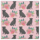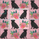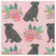Tissu Chiens de Carlin noir à fleurs roses