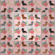 Tissu Chiens de Dachshund flore rose