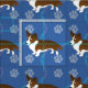 Ce joli et mignon dessin animé Pembroke Welsh Corgi (Brindle) se dresse avec un arrière - plan bleu décoré d'empreintes de pattes et de pistes dans les tons gris, rose et bleu. Conception par Diane Blackman. La même conception est disponible avec d'autres images amusantes de chien.
