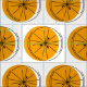Design cool avec une touche rétro avec une tranche stylisée d'orange sur un arrière - plan blanc. Un design personnalisable pour personnaliser avec votre propre texte, images et idées. Image d'art numérique originale créée par QuirkyChic.
