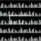 Un dessin d'une ligne d'horizon de la ville forme des rayures pâles intactes contre un ciel noir. Les bâtiments et les gratte-ciel sont dessinés en blanc et noir translucide, donc si vous changez la couleur arrière - plan, la couleur de la ville changera pour la compléter. Ce serait un bon motif pour la courtepointe, les masques et d'autres projets artisanaux. La ville pourrait être découpée en bandes pour les frontières.