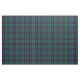 Tissu dans le tartan familial pour Clan Forsyth, un motif traditionnel écossais en plaid de 1795 en bleu royal, noir et vert de forêt, aux accents jaune et rouge vif. Motif se répète tous les 10 cm. Commande spéciale plus petite ou plus grande échelle via https://plaidwerx.com/contact.htm