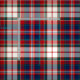 Tissu dans le tartan à robe formelle pour Clan MacFarlane, un motif écossais traditionnel en plaid de 1930 en rouge vif, bleu royal et blanc crémeux, aux accents vert forêt. Le motif répète tous les 4". Commande spéciale plus petite ou plus grande échelle via https://plaidwerx.com/contact.htm