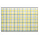 Tissu dans le tartan familial pour Clan McGrath, un motif traditionnel à plaid dans le jaune vif, le blanc crémeux et le bleu ciel avec des accents bleu foncé. Le motif répète tous les 4". Commande spéciale plus petite ou plus grande échelle via https://plaidwerx.com/contact.htm
