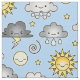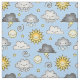 Ce motif de tissu comprend une variété d'icônes météo mignonnes avec des visages souriants ou froids dans le style kawaii : un soleil, une lune, un nuage blanc, un nuage de pluie, un nuage de neige, un nuage de tonnerre et des étoiles. Parfait pour les passionnés de météo, les météorologues, les chasseurs d'orages et les climatologues !
