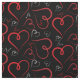 Design de tissu mignon avec coeur de gribouillis rouge et blanc et motif de script d'amour sur un arrière - plan noir.