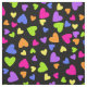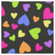 Un motif des coeurs jetés en l'air dans des couleurs roses, oranges, jaunes, vertes, bleues et pourpres sur un arrière - plan noir.