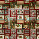 Un motif de vacances amusant et festif avec des cartes de Noël vintage de l'époque victorienne avec des verdures et des bordures décoratives sur arrière - plan damassé rouge.