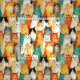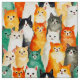 Un collage de chats dans les tons orange, blanc, gris, beige, noir et blanc. Chaque chat a une expression distincte, allant du curieux au contenu. Le style aquarelle et la répétition créent un motif animé et ludique.