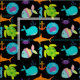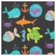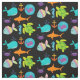 Les enfants de tissu aimeront, comportent un arrière - plan noir avec des créatures de mer comprenant une baleine bleue, baleine de bébé des poissons pourpres et rayés, de l'hippocampe bleu, de la tortue de mer verte, du crabe pourpre, du requin orange, et d'une ancre d'orange et d'or ! Les enfants qui aiment l'océan et les créatures qui vivent là aimeront ce tissu d'impression d'amusement !