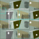 Tissu moderne de boomerang de la moitié du siècle dans gris et sarcelle d'hiver sur un arrière - plan de vert d'avocat. Lignes de la moitié du siècle classique et profil sous convention astérisque de intersection.