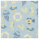 Design aquatique nautique réalisé dans des couleurs pastel de bleu, or et blanc. Poissons mignons, hippocampes, méduses, Boat Ring Life Buoy Preserver / sauveteur de vie, et algues. Le thème de l'océan / plage.