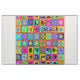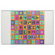 Alphabet Play Mat, Alphabet quilt, 56x56, rouge bleu vert, jaune rose turquoise, pastels orange citron vert, piquets, courtepointe contemporaine, symboles de l'alphabet, Virginia Vivier, Vagabond Folk Art, Southwest folk art, décoration boho, art indie.
