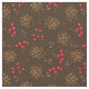 Tissu brun foncé rustique avec motif forestier de cônes de pin de sapin et de baies sèches rouges