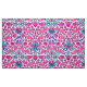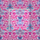 Tissu dans un motif vintage de William Morris des jacinthes, tulipes et feuille, aux nuances de fuchsia et doucement du rose, accentuées avec bleu-foncé et la turquoise, sur un arrière - plan blanc