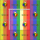 Un coq illustré dans toute sa gloire avec ses plumes de queue prêtes pour un arc-en-ciel de De Colores crient.