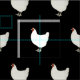 Fun tissu d'inspiration ferme avec un motif de coq blanc, sur un arrière - plan noir. Idéal pour l'artisanat ou la couture.