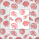 Tissu Coquillages - corail rose et blanc