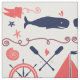 Tissu Corail nautique Orange Marine Baleines cordages et