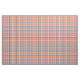 Fabric with a Plaidwerx original plaid pattern in orange blue and navy blue, with bright aqua, hot pink, and white accents. Pattern repeats every 1+3/8". Special order larger scale via https://plaidwerx.com/contact.htm