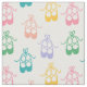 Tissus de Ballerina en blanc avec un motif de chaussures pointes en vert, rose, jaune, bleu, violet et orange.