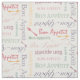Le pastel élégant a coloré le motif comportant une répétition des mots "fève Appetit" en français.