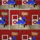 Cette conception de tissu a un ajouter vintage de danse carrée ou de danse d'oscillation à un arrière - plan fait pour ressembler à une grange rouge avec une piste de danse. Il y a également un signe qui indique la danse. Cette conception est disponible dans d'autres dispositions et tailles.