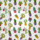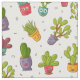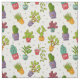 Tissu avec un motif mignon et amusant. Illustrations de différents cactus, assis dans des pots de fleurs avec des visages joyeux et souriants caricaturaux.