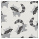 Tissu mignon avec ratons laveurs noirs et gris.