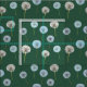 Ce tissu ou matériau est composé d'un motif de photos de pandelions ou d'horloges en blanc et vert citron contre un arrière - plan vert foncé.