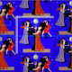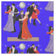 danse de 3 couples avec une boule et des étoiles de disco sur un arrière - plan bleu.