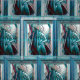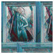 Une oeuvre d'art présente une femme semi-abstraite avec un châle / voile dans les tons bleu, blanc et rose.