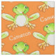 Fun aquarelle fantaisie grenouille art personnalisé nom motif tissu. Customisez avec votre propre nom et changez la couleur arrière - plan si nécessaire pour correspondre à votre schéma de couleurs, lit actuellement Cameron et l'arrière - plan est orange. Parfait pour customiser les amateurs de grenouilles à coudre des projets. Art original et design par Sarah Trett.