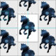 Cheval bleu sur tissu.Belle conception d'une silhouette de cheval courant.
