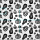 Tissu avec les citrouilles noirs et blancs pointillant l'illustration.