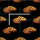 Gâteaux aux pépites de chocolat photo-réalistes vibrant imprimés sur un arrière - plan personnaliser-capable. L'arrière - plan noir montré dans cet exemple est grand pour laisser les biscuits de regard délicieux sautent le tissu. Tissu parfait pour ouvrer ou créer un biscuit ou un affichage ou une nappe de boulangerie.