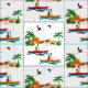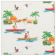 Un couple de recherche d'aventure kayaking dans le tropique est décrit sur ce tissu brillamment coloré. Il inspirera une variété sans fin de projets pour rappeler un des jours d'été heureux passés la plage ou les temps cabriolant dans les îles.