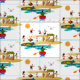 Un groupe de kayakers partying sur la plage est décrit sur ce tissu coloré. Il inspirera une variété sans fin de projets pour rappeler un des jours d'été heureux passés la plage ou les temps cabriolant dans les îles.
