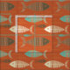 Utilisez ce tissu de poisson kitsch vintage rouge pour une grande variété de projets de couture. Le motif présente un arrière - plan rouge avec des poissons squelettiques brun, turquoise et jaune qui nagent avec le courant.
